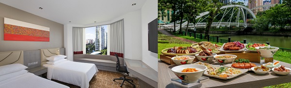 新加坡濠景福朋喜来登酒店客房内便可欣赏河畔美景;Four Points Eatery餐厅东南亚美食